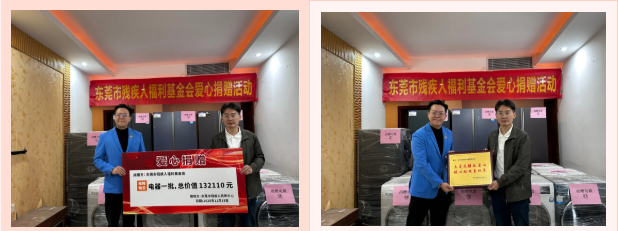 此次的电器物资是由东莞市残疾人福利基金会荣誉会长达让·翁姆捐赠的,这批爱心电器精准贴合中心学员的生活需求,包含冰箱、洗衣机、干衣机等日常必需品,为托养中心日常照料残疾人工作提供有力支持。