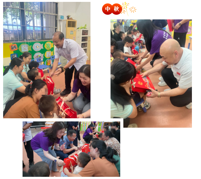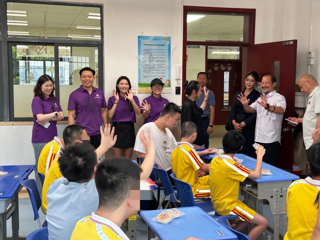 在东莞市康复实验学校,基金会、青委会代表们与学校的师生进行了温馨的交流,观摩了孩子们的教学和康复活动,对老师们长期以来的辛勤付出和无私奉献表达了崇高的敬意。香甜的月饼传递到孩子们手中,化作了一张张灿烂的笑脸,现场洋溢着欢乐祥和的节日氛围。