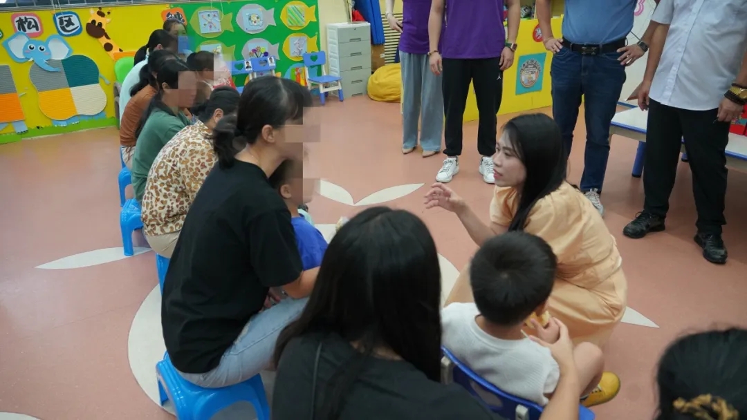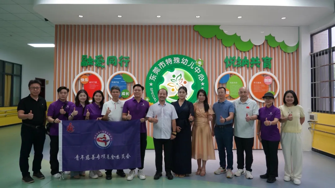 在东莞市特殊幼儿中心,基金会、青委会代表们重点关注了学龄前残疾幼儿的早期干预和成长环境,与工作人员探讨了特殊幼儿的康复教育需求,并为中心的小朋友们送上了暖心月饼和点心,希望他们能在关爱中快乐成长。