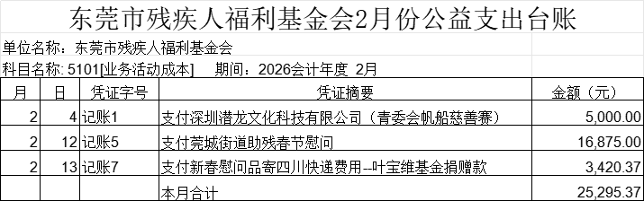 东莞市残疾人福利基金会2026年2月公益支出台账