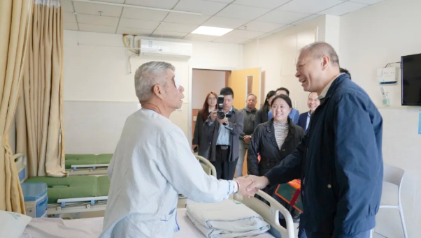 莞城街道党工委员萧健峰亲切问候尹先生术后的情况,并和医护人员详细了解尹先生两只眼睛的白内障情况。尹先生他双眼白内障多年,7月10日做左眼白内障手术,术前视力为 0.12,术后恢复至 0.6;11月20日做右眼白内障手术,术前视力0.05,术后0.6,目前术后恢复情况良好。后续爱尔眼科医院也会继续跟踪尹先生的情况。