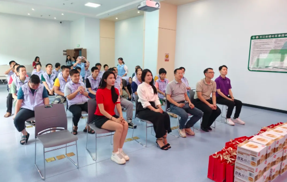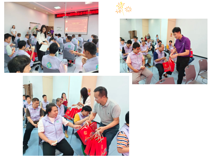 基金会、青委会一行人亲切看望了残疾人康复就业中心的学员,详细了解他们的日常就业和生活情况,鼓励他们坚定信心,融入社会,并现场派发中秋慰问月饼及点心,其乐融融。
